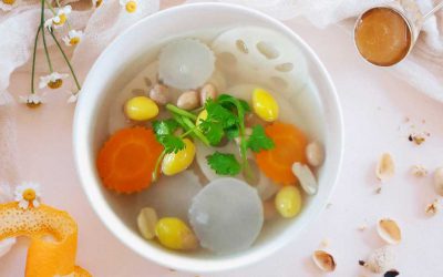 วัตถุดิบ ฤทธิ์ร้อน : รากบัวถั่วลิสงแปะก๊วยเม็ดบัวแคร์รอต (แครอท)ผักชีกระเทียมพริกไทย ฤทธิ์เย็น : หัวไชเท้าเกลือ วิธีทำ นำรากบัวมาล้าง...